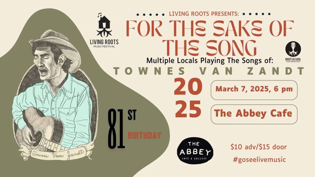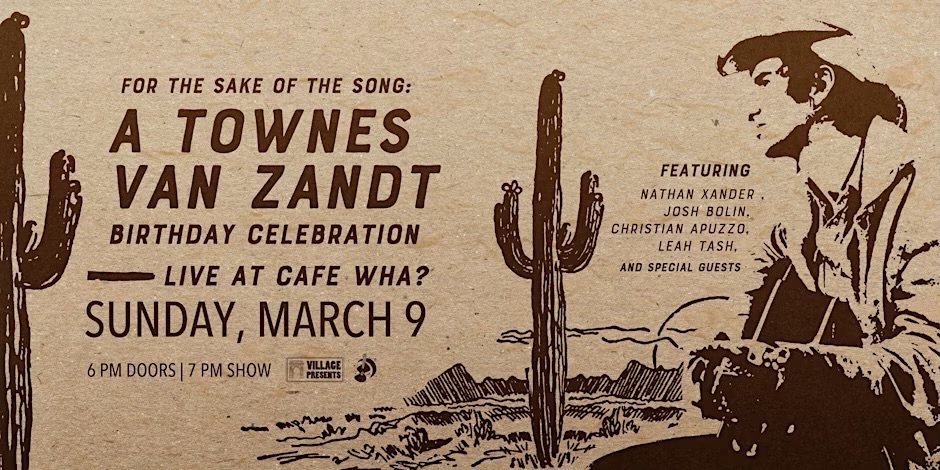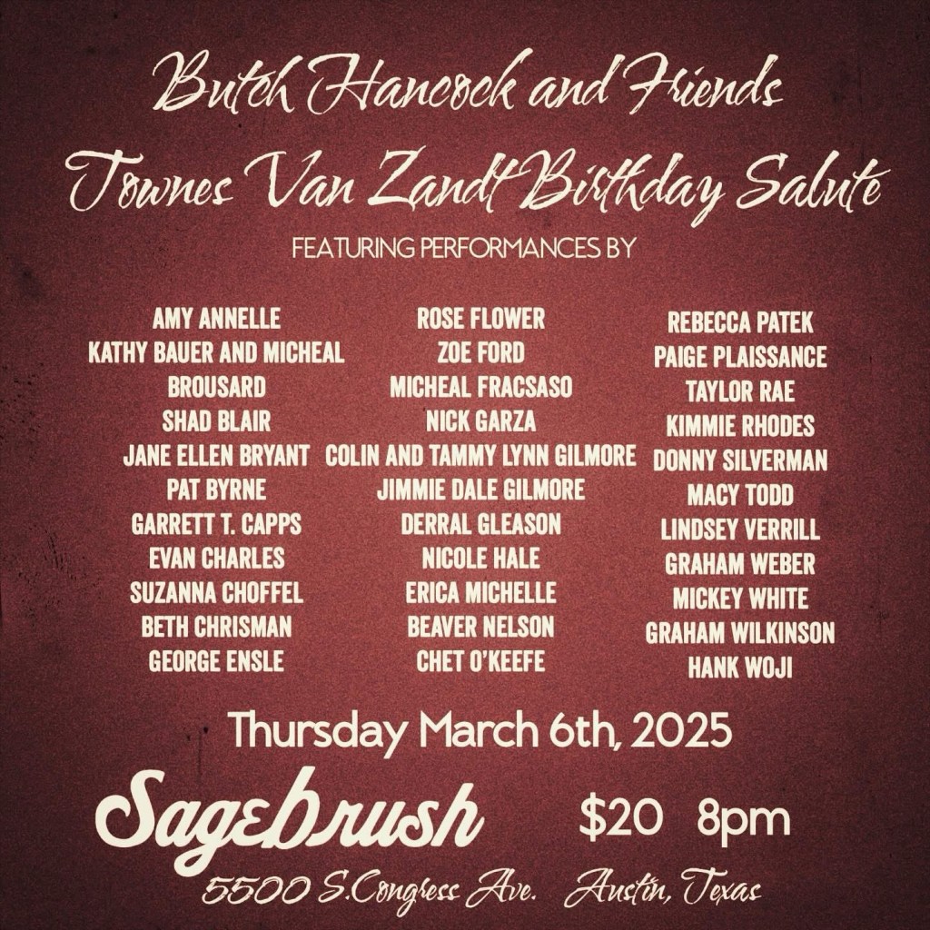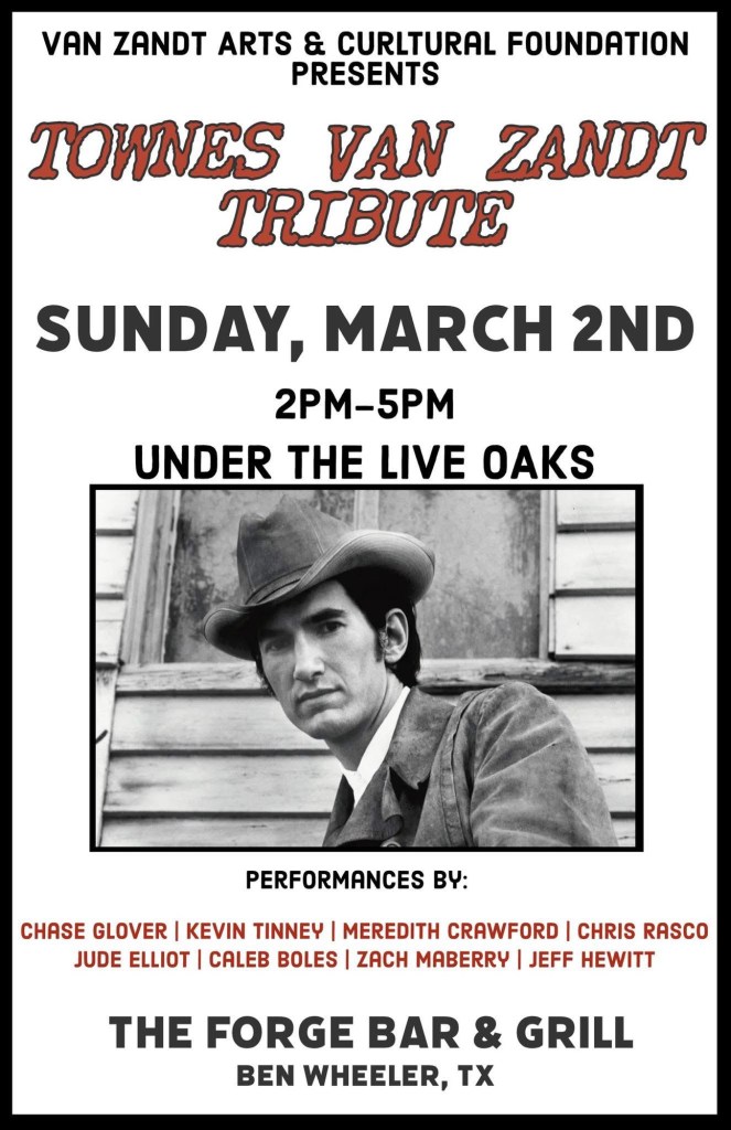 As always, visit facebook.com/townes20 for a full list of tributes to Townes Van Zandt on or around his birthday March 7th.