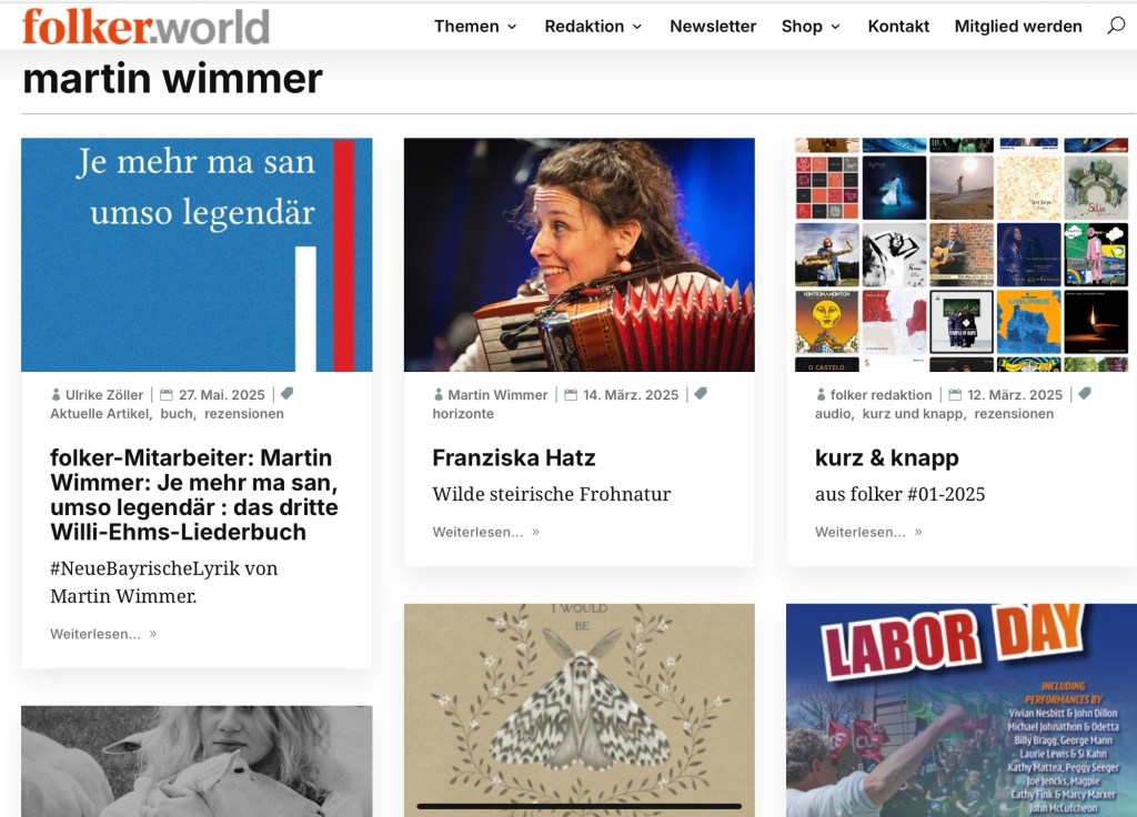 All of my articles for the renowned magazine, as well as articles about me, are now available under a single link. For over 25 years, Folker has been one of Europe’s outstanding publications on songwriters, folk music, Americana, world music, and more.