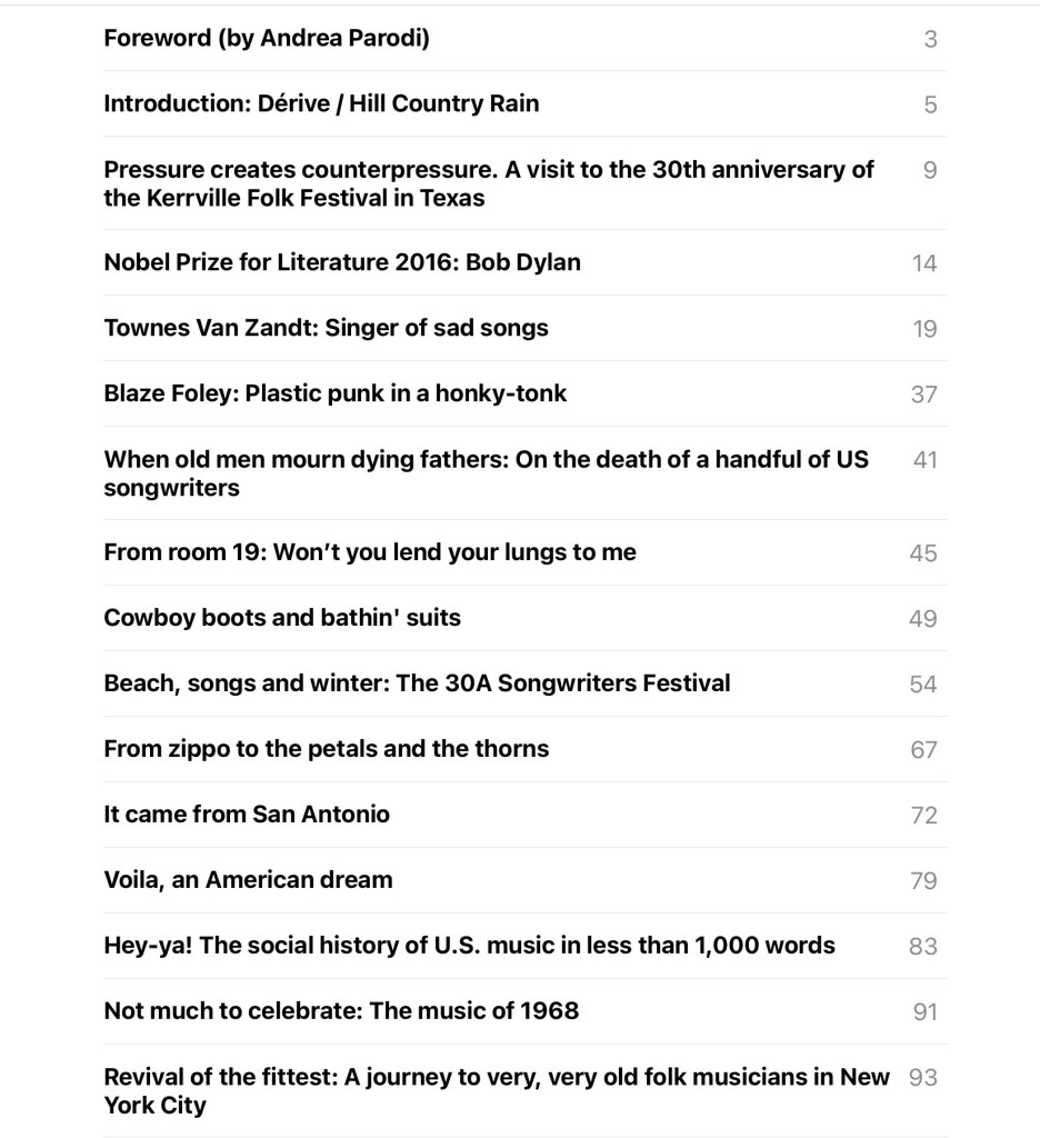„The love for Townes Van Zandt or Guy Clark isn’t a love like another. It’s something hardly describable, peculiar and intimate. It’s a treasure chest that shortens distances and turns life into a much more beautiful experience. It’s a treasure chest full of music, poetry, endless skies and sunset. The Texan ones. Stories, meetings, friendships.